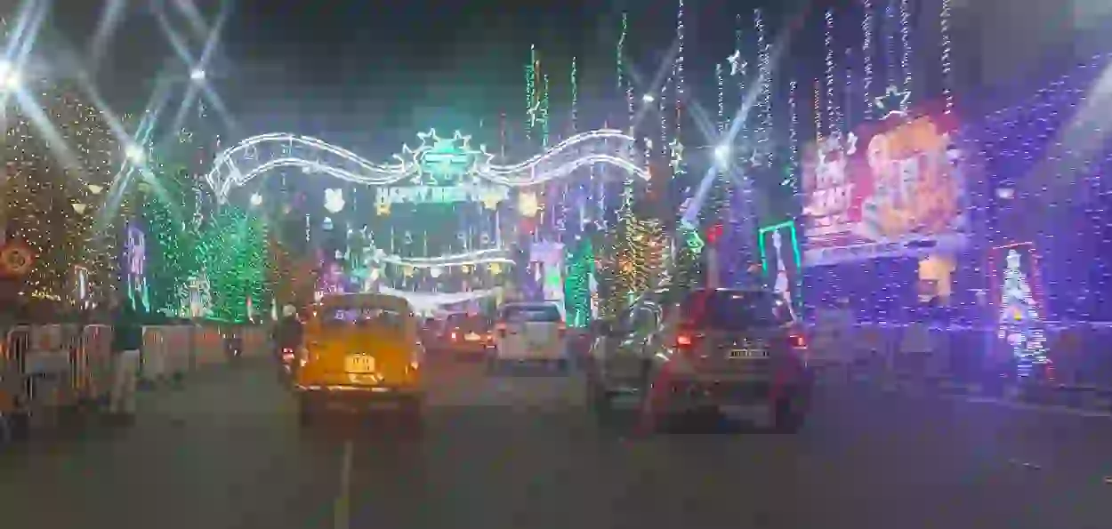 کولکتہ ۔ خوشیوں کا شہر،یوں تو بنگال کے سب سے بڑے تہوار درگا پوجا میں اپنی سجاوٹ اور رونق کے لیے مشہور ہے،کیونکہ کولکتہ بنگال کی تہذیب کا مرکز ہے اور درگا پوجا کے تہوار کی جگمگاہٹ اس تہذیب کا ایک نمایاں حصہ سمجھی جاتی ہے کیونکہ یہ درگا ماں کی سرزمین مانی جاتی ہے ۔ لیکن اس سرزمین پر درگا پوجا کی مانند جو تہوار منایا جاتا ہے وہ کرسمس ہوتا ہے ۔ ایک ی دو دن کی بات نہیں بلکہ دس سے بارہ دنوں تک کرسمس اور نئےسال کا جشن شہر کو دلہن بنا دیتا ہے۔ فطری طور پر یہ سوال ذہن میں ابھرتا ہے کہ آخر وہ کون سی کہانی ہے جس کے باعث عیسائیوں کی خوشیاں پچیس دسمبر سے ایک ہفتہ پہلے شروع ہو جاتی ہیں اور نئے سال کے جشن میں ضم ہو جاتی ہیں۔ یہ جشن اس قدر ہمہ گیر ہوتا ہے کہ عیسائی صرف چرچ تک محدود نظر آتے ہیں جبکہ ہندو مسلمان سکھ اور دیگر مذاہب سے تعلق رکھنے والے لوگ روشنیوں میں نہائی سڑکوں پر خوشیاں مناتے دکھائی دیتے ہیں۔ یہی وہ پہلو ہے جو کولکتہ کے کرسمس کو پورے ملک میں منفرد بناتا ہے۔