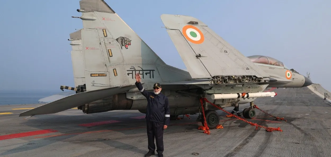 اپنے دورے سے قبل وزیراعظم نریندر مودی اتوار کی شام دہلی سے خاموشی کے ساتھ گوا روانہ ہوئے۔ وہاں سے وہ گوا کے ساحل کے قریب آئی این ایس وکرانت پہنچے۔ یہ پورا سفر اور دورہ نہایت رازدارانہ انداز میں انجام دیا گیا۔آئی این ایس وکرانت پر وزیراعظم مودی کی مصروفیات طویل اور متنوع رہیں۔ وہ فلائٹ ڈیک پر گئے جہاں ان کے ارد گرد میگ 29 کے لڑاکا طیارے موجود تھے۔وزیراعظم نے فضائی طاقت کے مظاہرے کا مشاہدہ کیا جہاں میگ 29 طیاروں نے دن اور رات دونوں وقت مختصر رن وے سے اڑان بھری اور لینڈنگ کی۔