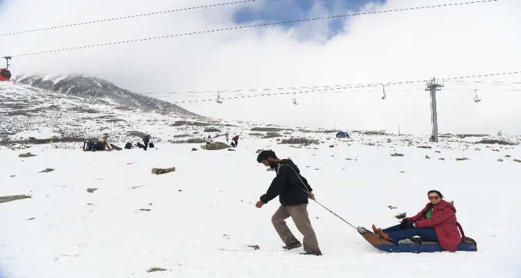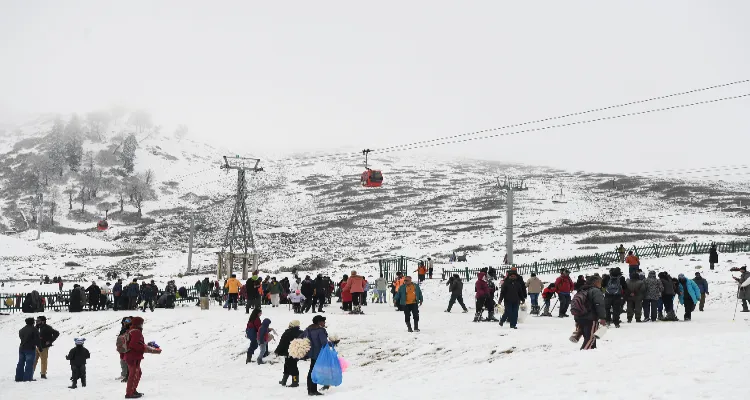 گلمرگ ۔ سری نگر ::جموں و کشمیر کے ضلع بارہ مولا میں واقع مشہور سیاحتی مقام گلمرگ تازہ برف باری کے بعد ایک حسین سفید وادی میں تبدیل ہو گیا ہے۔ سرسبز گھاس کے میدانوں اور دلکش مناظر کے لیے مشہور یہ پہاڑی مقام اب نرم اور چمکدار برف کی تہہ میں ڈھک چکا ہے جس نے سیاحوں کو اپنی جانب کھینچ لیا ہے۔