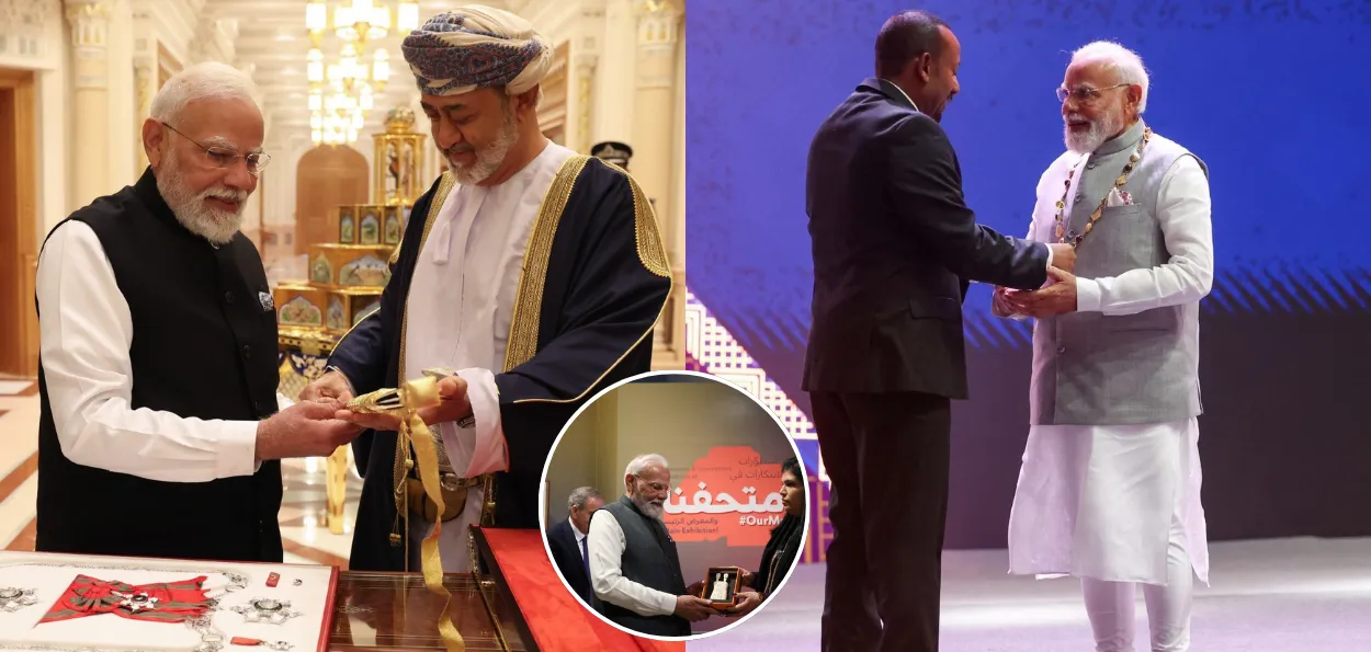 عمان میں وزیر اعظم مودی کی قیادت کو اعلیٰ سطحی اعتراف ملا۔ عمان پہنچنے پر وزیر اعظم مودی کا استقبال عمان کے نائب وزیر اعظم برائے دفاعی امور سید شهاب بن طارق آل سعید نے کیا جو سلطان عمان کے بھائی بھی ہیں۔ اس دورے کے دوران سلطان ہیثم بن طارق نے وزیر اعظم مودی کو دو طرفہ تعلقات مضبوط بنانے میں نمایاں خدمات کے اعتراف میں آرڈر آف عمان فرسٹ کلاس سے نوازا۔ یہ اعزاز غیر معمولی اہمیت رکھتا ہے کیونکہ اس کے ذریعے وزیر اعظم مودی عالمی شخصیات کے منتخب گروہ میں شامل ہو گئے جن میں ملکہ الزبتھ دوم اور نیلسن منڈیلا بھی شامل ہیں۔یہ وزیر اعظم مودی کو کسی ملک کی جانب سے دیا جانے والا 29 واں اعلیٰ اعزاز تھا۔ اس اعزاز کی خاص بات یہ رہی کہ خلیج تعاون کونسل کے 6 میں سے 5 عرب ممالک وزیر اعظم مودی کو اپنا اعلیٰ ترین اعزاز دے چکے ہیں۔