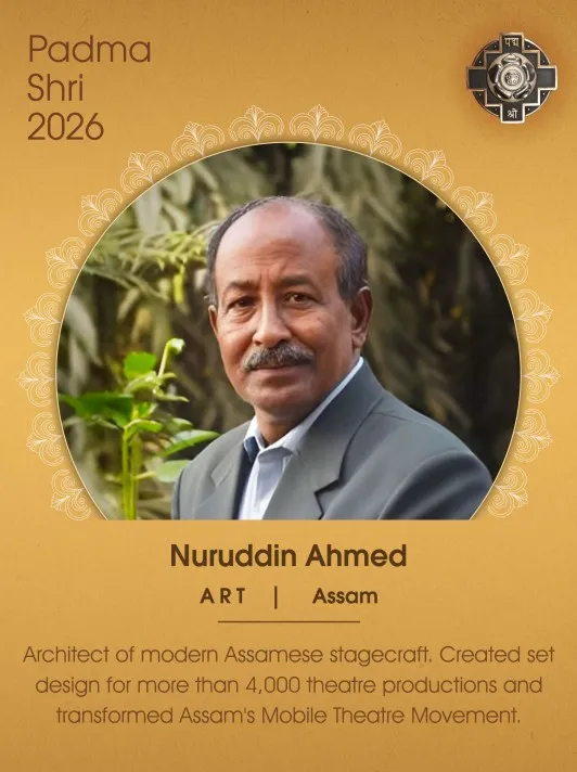 آسام کے معروف مجسمہ ساز اور آرٹ ڈائریکٹر نورالدین احمد کو باوقار پدم شری ایوارڈ سے نوازا گیا ہے۔ بورڈوا میں حال ہی میں افتتاح ہونے والے بتادراوا کلچرل پروجیکٹ پر ان کے کام کو بے حد سراہا گیا ہے جو ان کے شاندار کیریئر کا ایک اہم سنگ میل ثابت ہوا ہے۔ نورالدین احمد اس سال آسام سے پدم شری حاصل کرنے والی پانچ شخصیات میں شامل ہیں۔ کالیابور میں آسام ناٹیا سمیلن کی جانب سے اسٹیج پر ایک اور اعزاز ملنے کے فوراً بعد انہوں نے اپنی خوشی کا اظہار کیا۔ اس فہرست میں سابق مرکزی وزیر کبندر پرکاشستھ سمیت ریاست کی کئی ثقافتی شخصیات شامل ہیں۔
