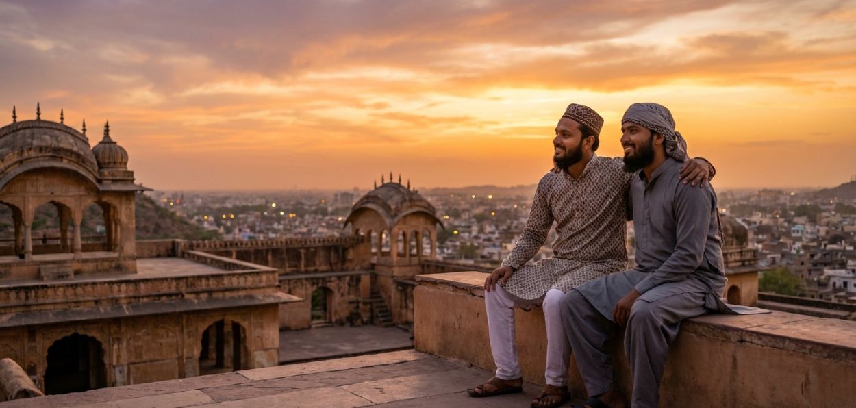 اسی طرح ایک اور روشن یاد گالتا دھام سے جڑی ہے جو جے پور کے ایک پُرسکون پہاڑی پر واقع ہے۔ کئی شامیں ہم اس مندر تک چڑھتے۔ کنارے بیٹھ کر سورج کو گلابی شہر پر ڈوبتے دیکھتے۔ منظر جادوئی ہوتا تھا۔ جے پور روشنیوں میں نہایا ہوا نظر آتا اور ہم ایک دوسرے سے کہتے میرے دوست یہ شہر کتنا خوبصورت ہے۔کئی دنوں تک ہمیں دیکھنے کے بعد ایک دن مندر کے پجاری نے ہمیں بلایا۔ مسکرا کر پوچھا کیا تم روز آتے ہو۔ کیا یہ جگہ واقعی اتنی خوبصورت ہے۔ ہم ہلکے سے ہنسے اور کہا پجاری جی یہ جگہ واقعی بہت خوبصورت ہے اور اس چوٹی پر موجود یہ مندر اسے اور بھی خاص بنا دیتا ہے۔ان کی مسکراہٹ اور وسیع ہو گئی۔ تھوڑی دیر کے بعد انہوں نے نرمی سے پوچھا کیا تم دونوں مسلمان ہو۔ ہم نے بلا جھجھک ہاں میں سر ہلا دیا۔ اس کے بعد انہوں نے جو کہا وہ محبت سے بھرا ہوا تھا۔ انہوں نے کہا مجھے تمہاری عقیدت دیکھ کر خوشی ہو رہی ہے۔ تم مہذب بچے ہو۔ تمہارے دل ہندوستان کے اصل رنگوں کی عکاسی کرتے ہیں۔