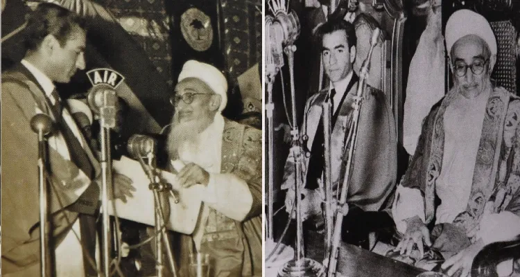 سیدنا طاہر سیف الدین اے ایم یو کے پہلے چانسلر تھے جن کے دور میں چار ممالک کے سربراہان نے درسگاہ کا دورہ کیا تھا ،نچلی تصویر میں شاہ ایران کے ساتھ